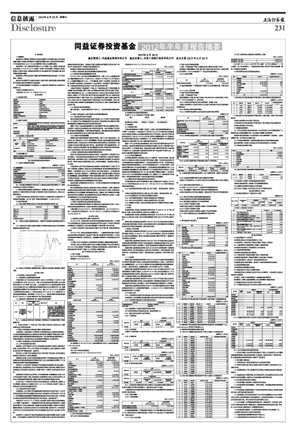 同益证券投资基金2012年半年度报告摘要