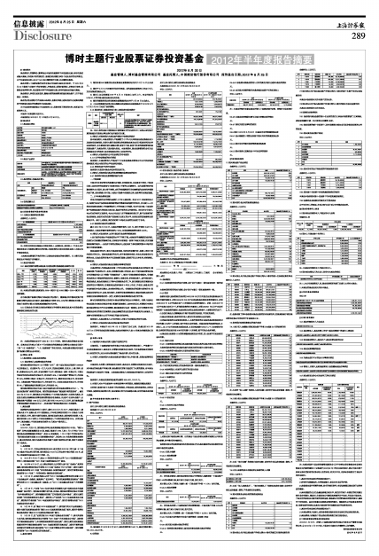 博时主题行业股票证券投资基金2012年半年度报告摘要