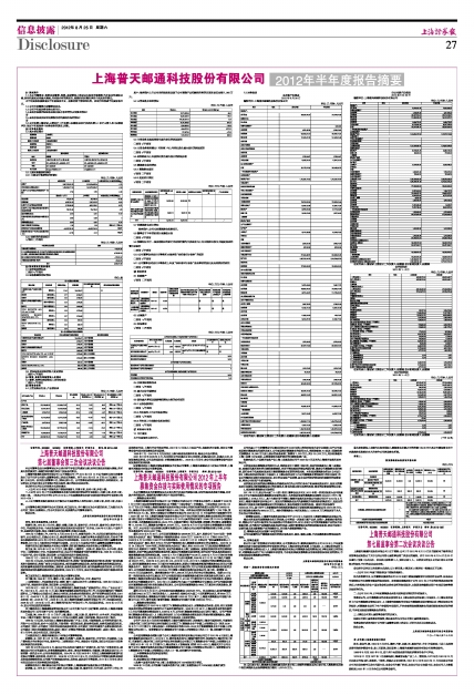 上海普天邮通科技股份有限公司2012年半年度报告摘要