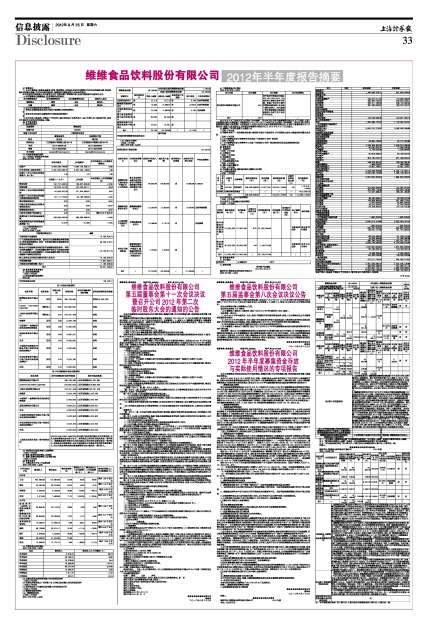 维维食品饮料股份有限公司2012年半年度报告摘要
