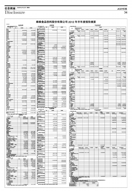 维维食品饮料股份有限公司2012年半年度报告摘要
