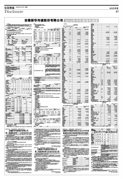 安徽新华传媒股份有限公司2012年半年度报告摘要