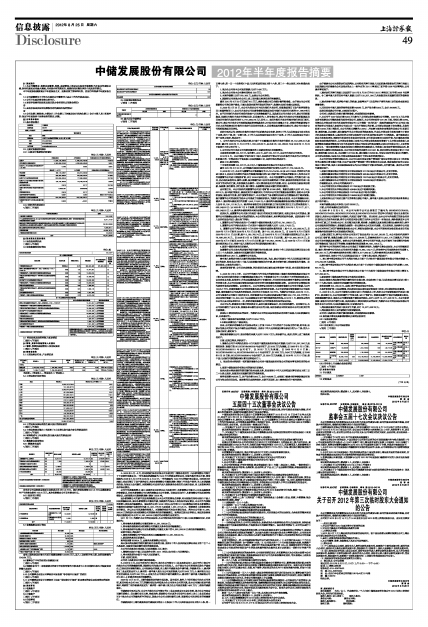 中储发展股份有限公司2012年半年度报告摘要