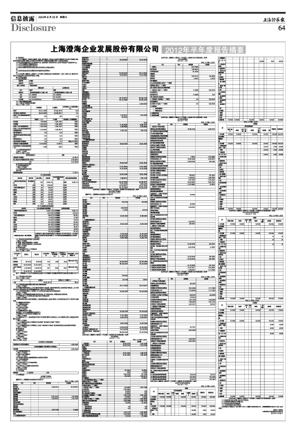 上海澄海企业发展股份有限公司2012年半年度报告摘要