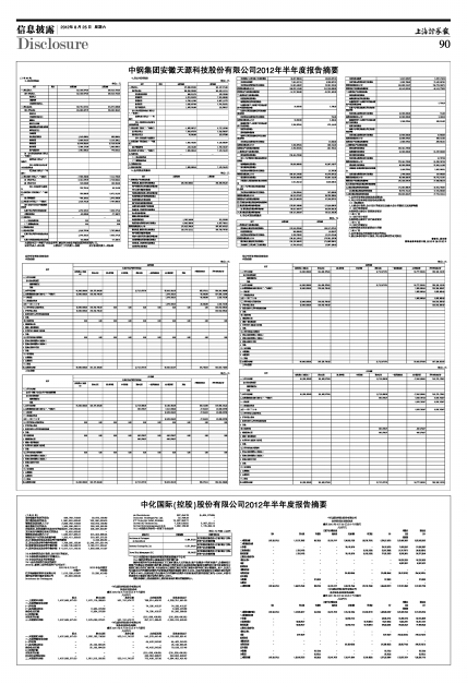 中钢集团安徽天源科技股份有限公司2012年半年度报告摘要