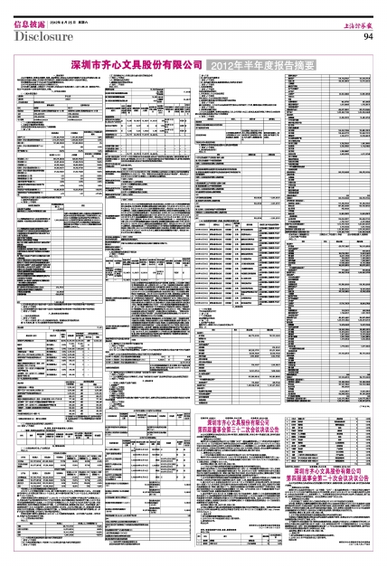 深圳市齐心文具股份有限公司2012年半年度报告摘要
