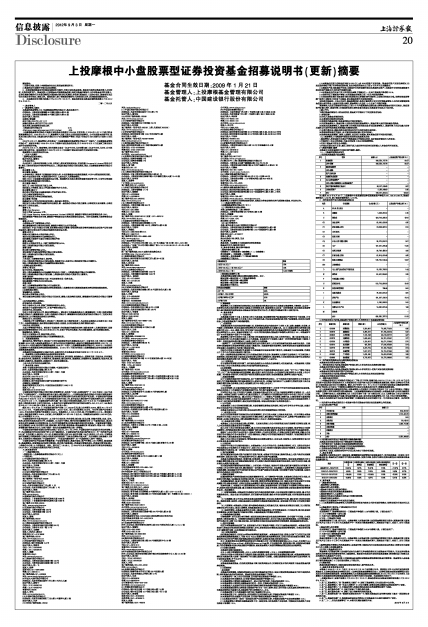 本基金于2009年1月21日成立,至2012年7月20日运作满三年半。现依据《中华人民共和国证券投资基金法》、《证券投资基金运作管理办法》、《证券投资基金销售管理办法》、《证券投资基金信息披露管理办法》及其它有关法律法规的要求, 结合基金管理人对本基金实施的投资经营活动,对2012年3月5日公告的《上投摩根中小盘股票型证券投资基金招募说明书》进行内容补充和更新, 主要更新的内容如下: