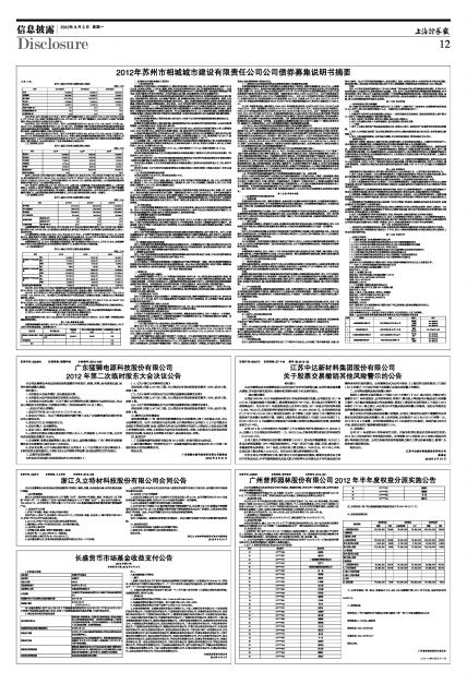 2012年苏州市相城城市建设有限责任公司公司债券募集说明书摘要