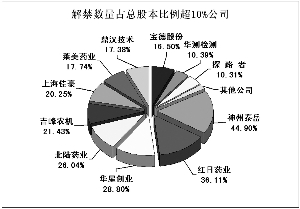 据统计数据显示,剔除大股东和实际控制人的持股影响,将有20家公司的7.07亿股解禁,占本次解禁股数的近20%,解禁市值高达112.55亿元,占本次解禁市值的21.81%。