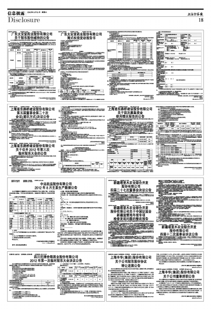 2012年9月7日,广东太安堂药业股份有限公司(以下简称“公司”)收到公司持股5%以上股东汕头市华宇投资控股有限公司(以下简称“华宇投资”)减持公司股份的通知,华宇投资于2012年8月22日至2012年9月6日以集中交易和大宗交易的方式累计减持公司无限售流通股股份4,950,000股,累计减持股份占公司总股本的4.95%。具体减持情况如下: