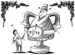 在陕西省安监局长杨达才一张事故现场面带微笑、腕戴豪表的照片成了舆论焦点后,经媒体记者多方求证,找到了为杨做“手表鉴定”的网友。他说,他所关注的1000多名官员,有300多名戴了豪表,单价最高者为70万。漫画 刘道伟