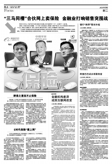对涉及金融业务一事,其实除了此次盛传的“三马”合盟成立网络保险公司外,阿里巴巴此前已建有“阿里巴巴金融”,为阿里巴巴B2B公司及淘宝和天猫网商提供小额贷款服务,并在浙江、重庆两地设立了小额贷款公司。但据阿里巴巴小贷公司内部人士介绍,在集团内部,阿里巴巴金融更近乎一个服务的部门,周转资金量不大但非常繁琐,为的是把贷款门槛最大程度地降低,服务阿里巴巴会员及网商。