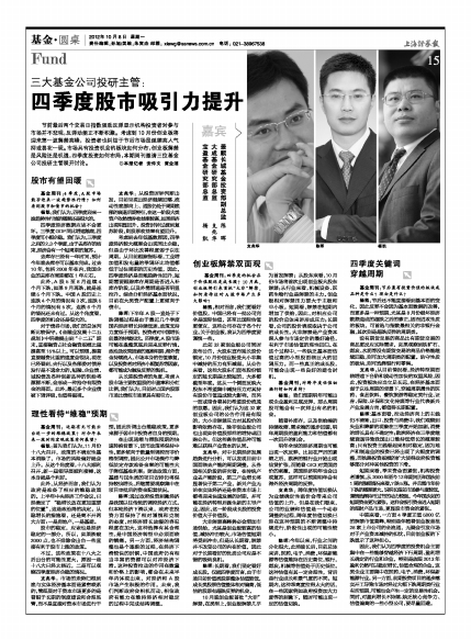 三大基金公司投研主管:四季度股市吸引力提升