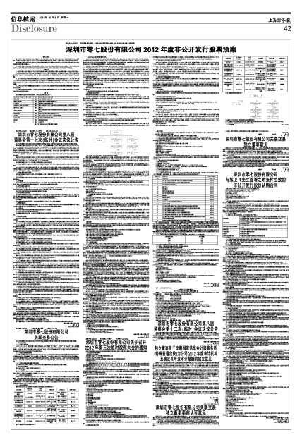 深圳市零七股份有限公司2012年度非公开发行股票预案
