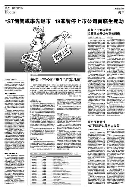 *ST创智或率先退市 18家暂停上市公司面临生死劫