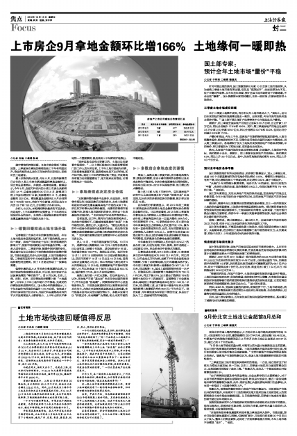 楼市销售的持续回暖,令房企资金得到了顺畅回笼,三季度房企拿地的积极性较上半年有明显回升,资金充裕的龙头房企正在地价的历史低位,积极补充土地储备。