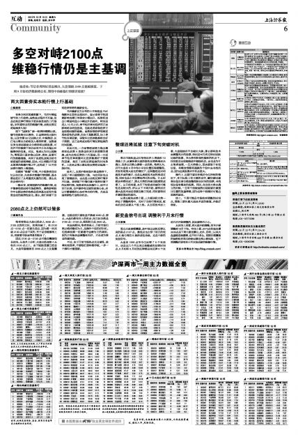 从时间上来看,若大盘开始调整,则至少要调整到10月下旬。空间上看,2073点和强支撑2036点是下周主要支撑位。此外,自周二以来大盘量能连续萎缩,这不利于多头。前期巨幅震荡的强势股在周五纷纷回落也预示着风险,但下周调整后更有利于月末发动新的维稳行情。