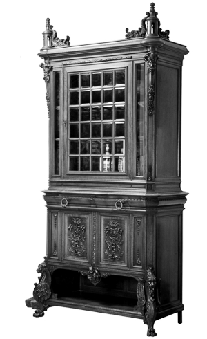 家具的图案主要表现在扭索(麻花纹)、蛋形、短矛、串珠线脚及叶饰、花饰等。装饰题材为宗教、历史、寓言故事。家具主要用材为胡桃木、椴木、橡木、紫檀木等。蒙面料采用染有鲜艳色彩的皮革。