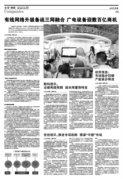 此外,纵观前三季度的报告可以发现,数码视讯在CA系统和前端设备领域的市场占有率仍在持续提升,公司的海外业务收入实现了倍增,显示公司在创新业务领先的同时,实现了传统优势业务的持续提升。