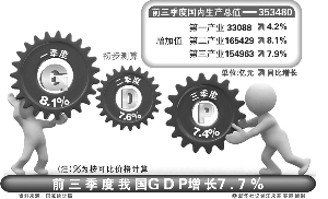 国家统计局昨日公布数据显示,三季度GDP同比增长7.4%,较二季度回落0.2个百分点,创下三年半以来新低。