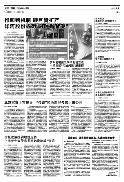 泸州老窖前三季净利增五成 中粮集团“闪进闪退”股东榜