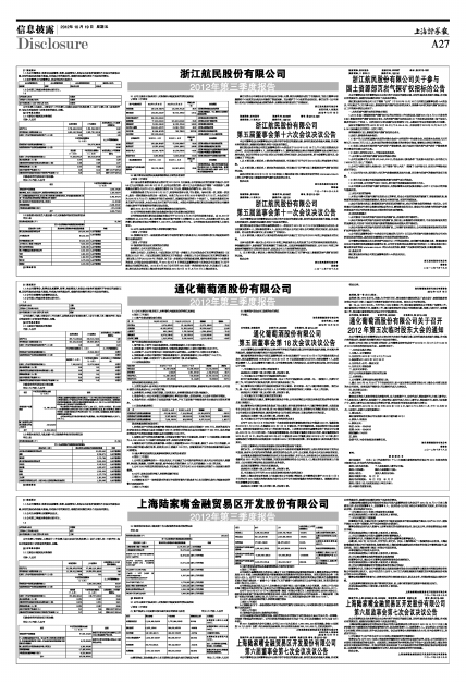 上海陆家嘴金融贸易区开发股份有限公司2012年第三季度报告