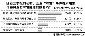 上周,中国证券网进行了“随着三季报的公布,基金‘踩雷’事件有所增加,你会回避有踩雷隐患的股基吗”的网络互动调查,结果显示,由于不确定性的增加,近期普通投资者在投资基金方面的谨慎情绪有所上升。