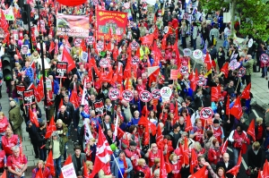 当地时间10月20日,英国伦敦,游行示威的人群。当日,英国三大重要城市伦敦、格拉斯哥、贝尔法斯特同时爆发大规模示威游行,抗议英国政府的财政紧缩政策。据游行组织者英国公会联盟估计,全英国共有超过15万人参加游行。这是2012年英国爆发的规模最大的示威游行活动。