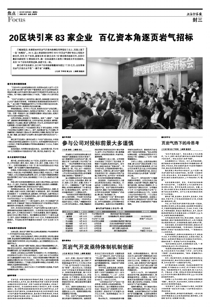 20区块引来83家企业 百亿资本角逐页岩气招标