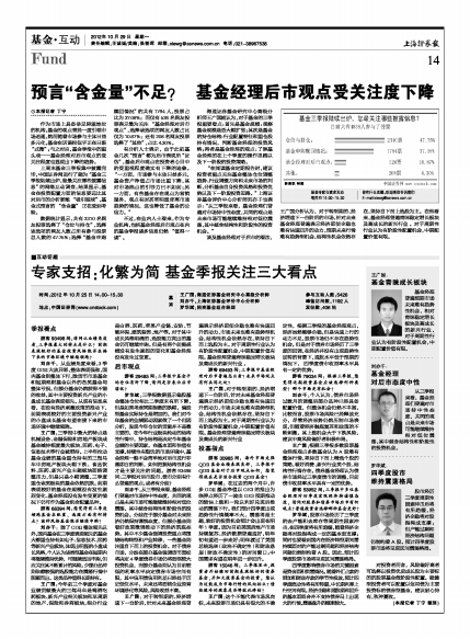 作为市场上具备举足轻重地位的机构,基金的观点曾经一度引领市场追逐,然而随着市场参与主体日益多元化,基金在话语权似乎正在日渐“式微”;与之对应,基金季报中的重头戏——基金经理对后市观点的受关注程度也显现出下降的趋势。