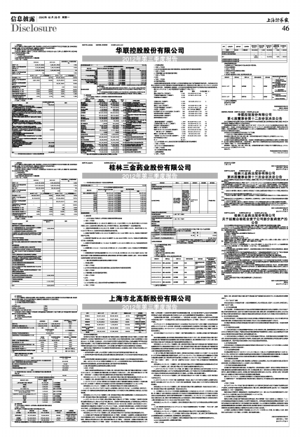 上海市北高新股份有限公司2012年第三季度报告