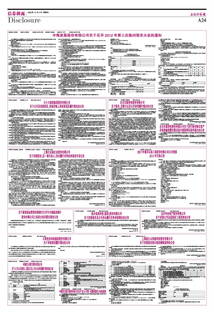 中海发展股份有限公司关于召开2012年第三次临时股东大会的通知