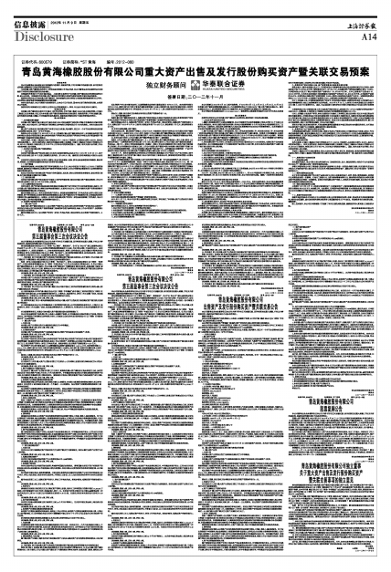 青岛黄海橡胶股份有限公司重大资产出售及发行股份购买资产暨关联交易预案