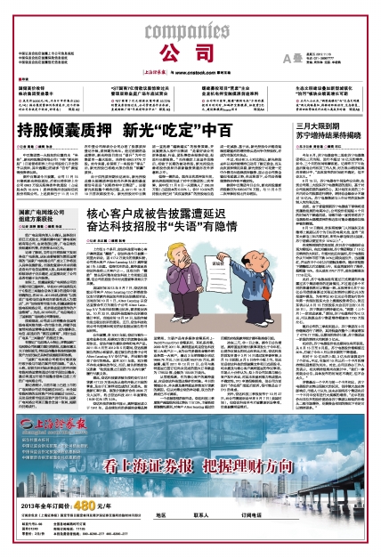 经上海证券报社授权,中国证券网独家全权代理《上海证券报》信息登载业务。本页内容未经书面授权许可,不得转载、复制或在非中国证券网所属服务器建立镜像。欲咨询授权事宜请与中国证券网联系 (400-820-0277) 。
