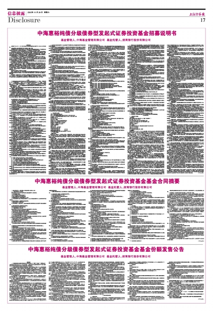 中海惠裕纯债分级债券型发起式证券投资基金基金份额发售公告