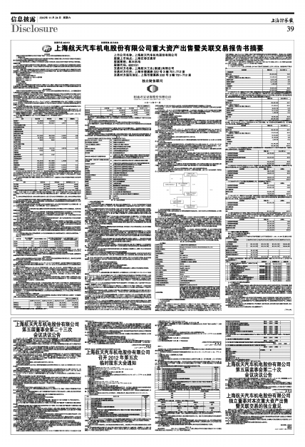 上海航天汽车机电股份有限公司重大资产出售暨关联交易报告书摘要