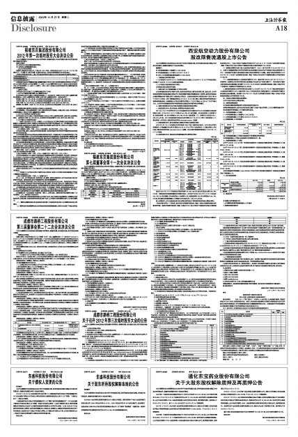 2012年11月26日,本公司接中国证券登记结算有限责任公司上海分公司的通知,东宝实业集团有限公司将质押股份5,960,000股,于2012年11月21日解除质押。
