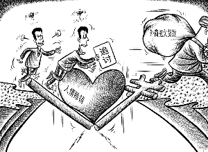 在义乌这个中国境内交易最为繁茂的国际贸易市场,盛行赊销模式,而“爱面子、性急、法律意识淡薄”的中国商人,面对价格杀手、拖货款和合同高手的外商,往往吃大亏。近三年多他们被拖欠的货款逾4亿。目前有16家商户在追讨千万外商货款。漫画 刘道伟