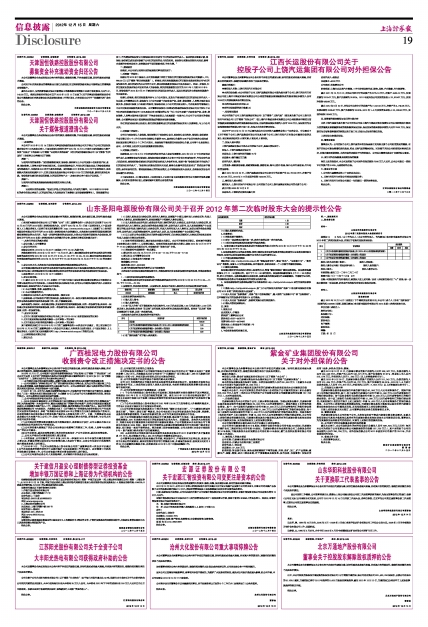 山东圣阳电源股份有限公司关于召开2012年第二次临时股东大会的提示性公告