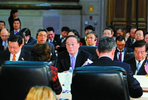 第二十三届中美商贸联委会会议当地时间19日在美国首都华盛顿举行。国务院副总理王岐山与美国商务部代理部长布兰克、贸易代表柯克共同主持。