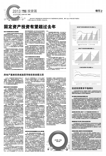2012年,我国固定资产投资运行呈现出以下主要特征:第一,继续保持放缓的态势,下半年,“稳增长”政策效果不断显现,投资放缓格局有所改善。第二,投资结构出现分化,制造业投资总体减速、房地产投资低位企稳、基建投资恢复较快;第三,三大区域板块投资结构继续优化。