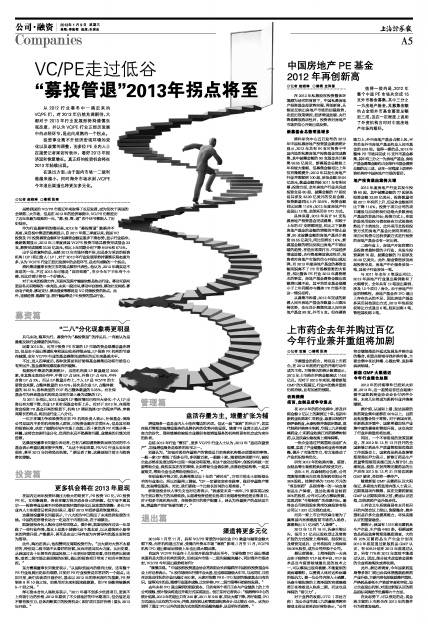 VC/PE走过低谷 “募投管退”2013年拐点将至