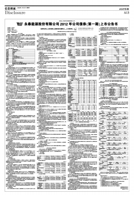 永泰能源股份有限公司2012年公司债券(第一期)上市公告书
