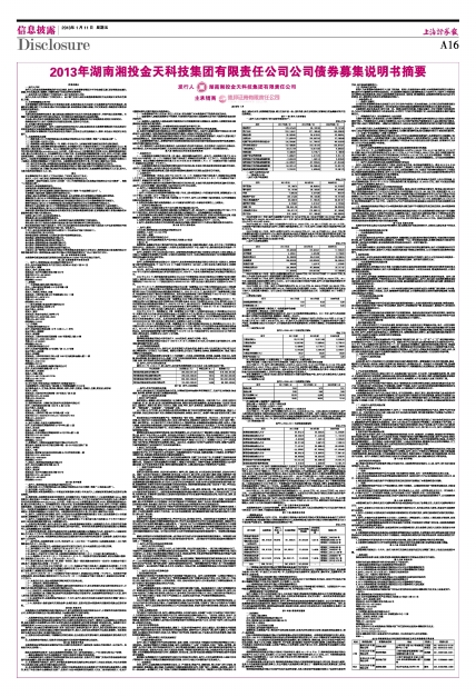 3、2013年湖南湘投金天科技集团有限责任公司公司债券募集说明书摘要