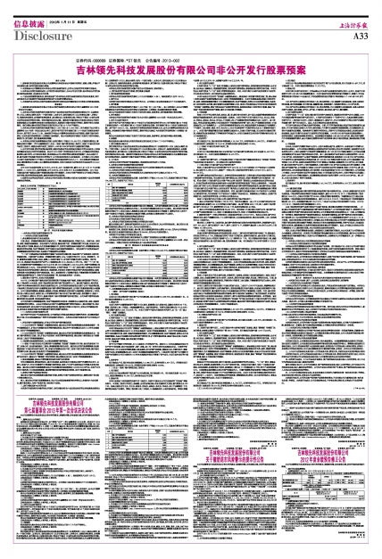 吉林领先科技发展股份有限公司非公开发行股票预案