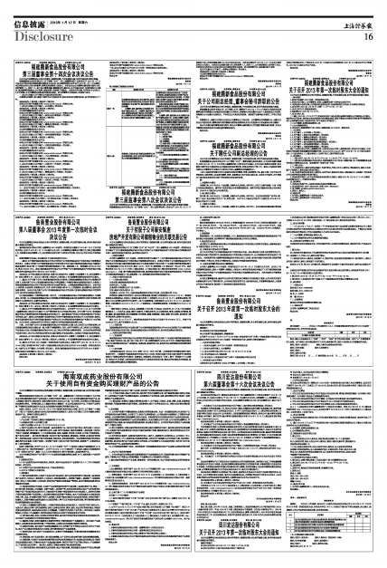 证券代码:002693 证券简称:双成药业 公告编号:2013-002