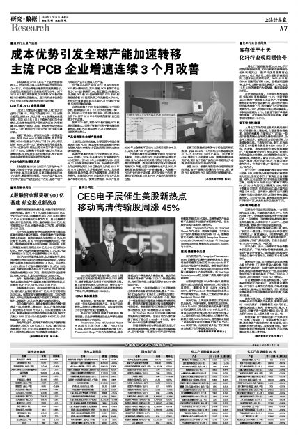 台湾地区整个PCB行业则展现出了不同的态势,台湾地区PCB厂12月份环比虽然下降了9%,但远好于北美地区同行水平,同比增长更是达到7%,创下2012年2月以来的新高,且已连续3个月改善。