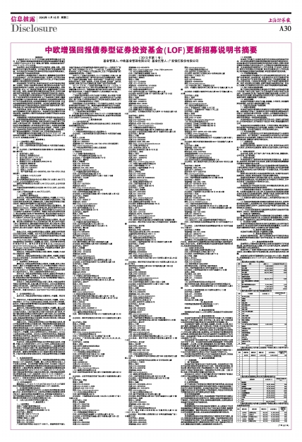 中欧增强回报债券型证券投资基金(LOF)更新招募说明书摘要
