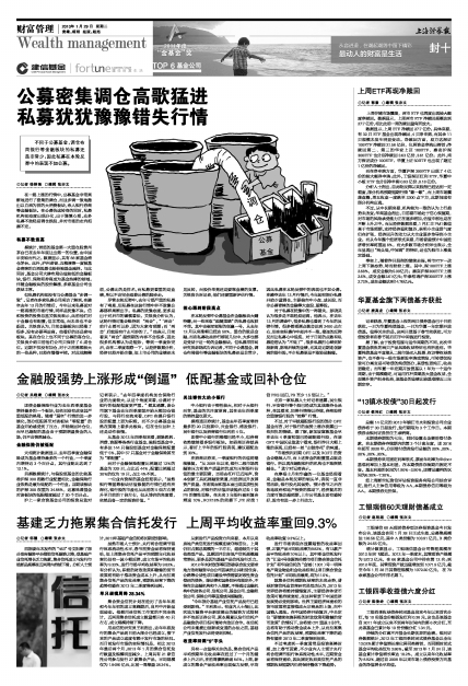另有一点值得关注的是,集合信托产品平均预期年化收益率在经过了一个月的缓步上升之后,在前周骤然跌破8.6%。上周,新成立的集合产品收益率出现强力反弹,平均收益率收复9.3%以上。