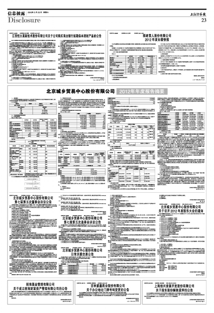 北京城乡贸易中心股份有限公司2012年年度报告摘要